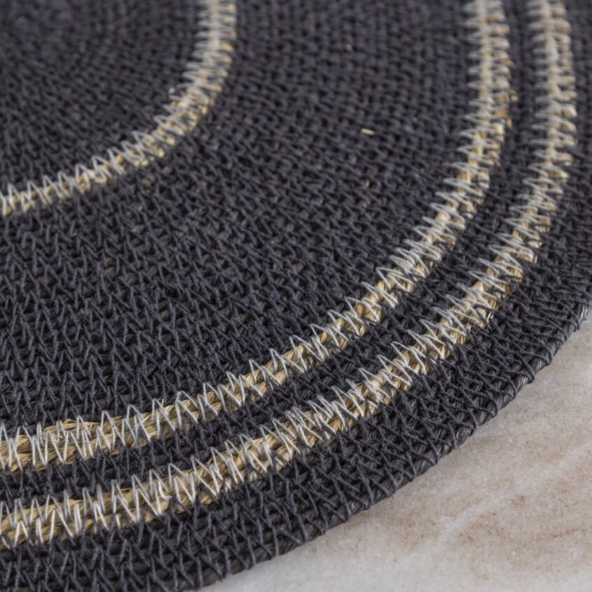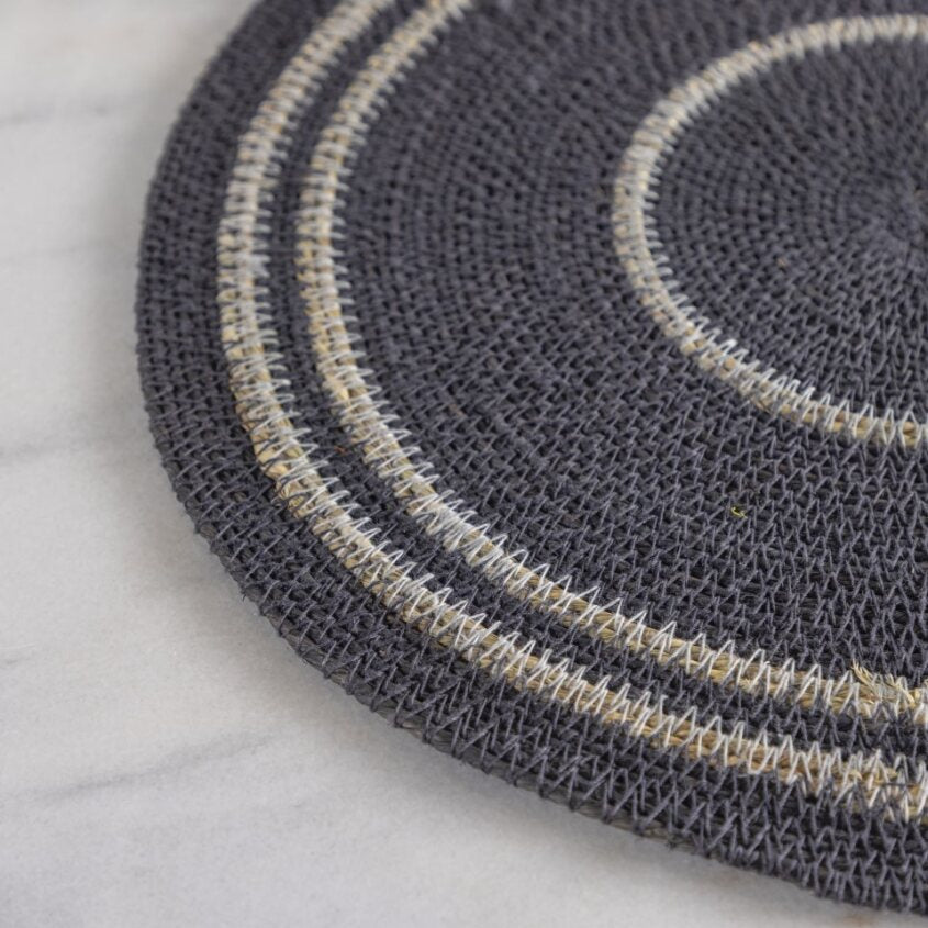 This luxurious placemat, in a striking Navy hue, is expertly crafted from dyed woven seagrass. The unique round shape and subtle white stripes add a touch of sophistication to any table setting. Elevate your dining experience with the Hydra Placemat.