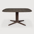 Inspired by the vaults within grand architectural designs, the Corto's central-footed base provides both visual interest and practical stability with less leg disturbance for your guests. The solid oak brown tabletop is crafted into the perfect shape, with unique rounded corners to create welcoming and comfortable social or professional gatherings.