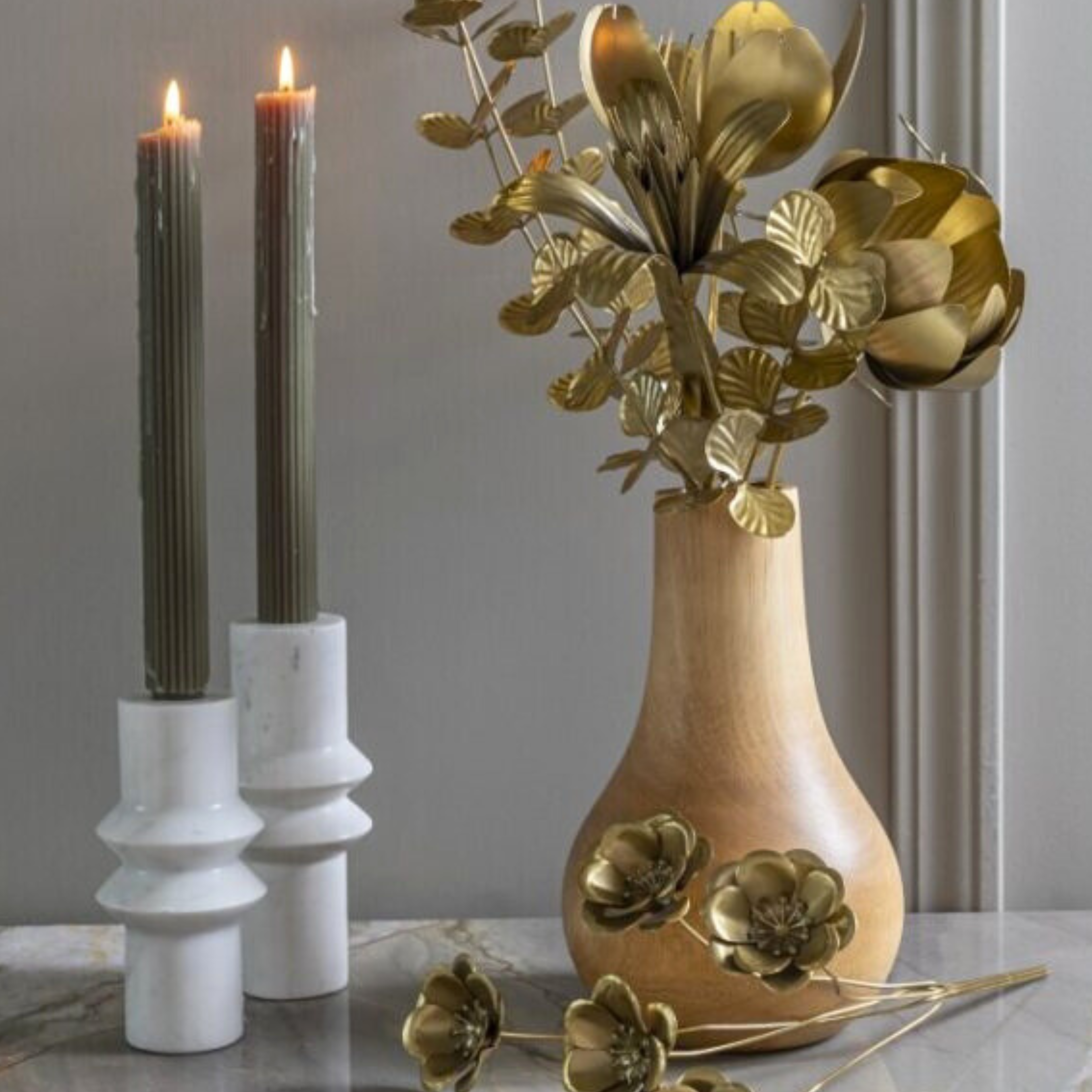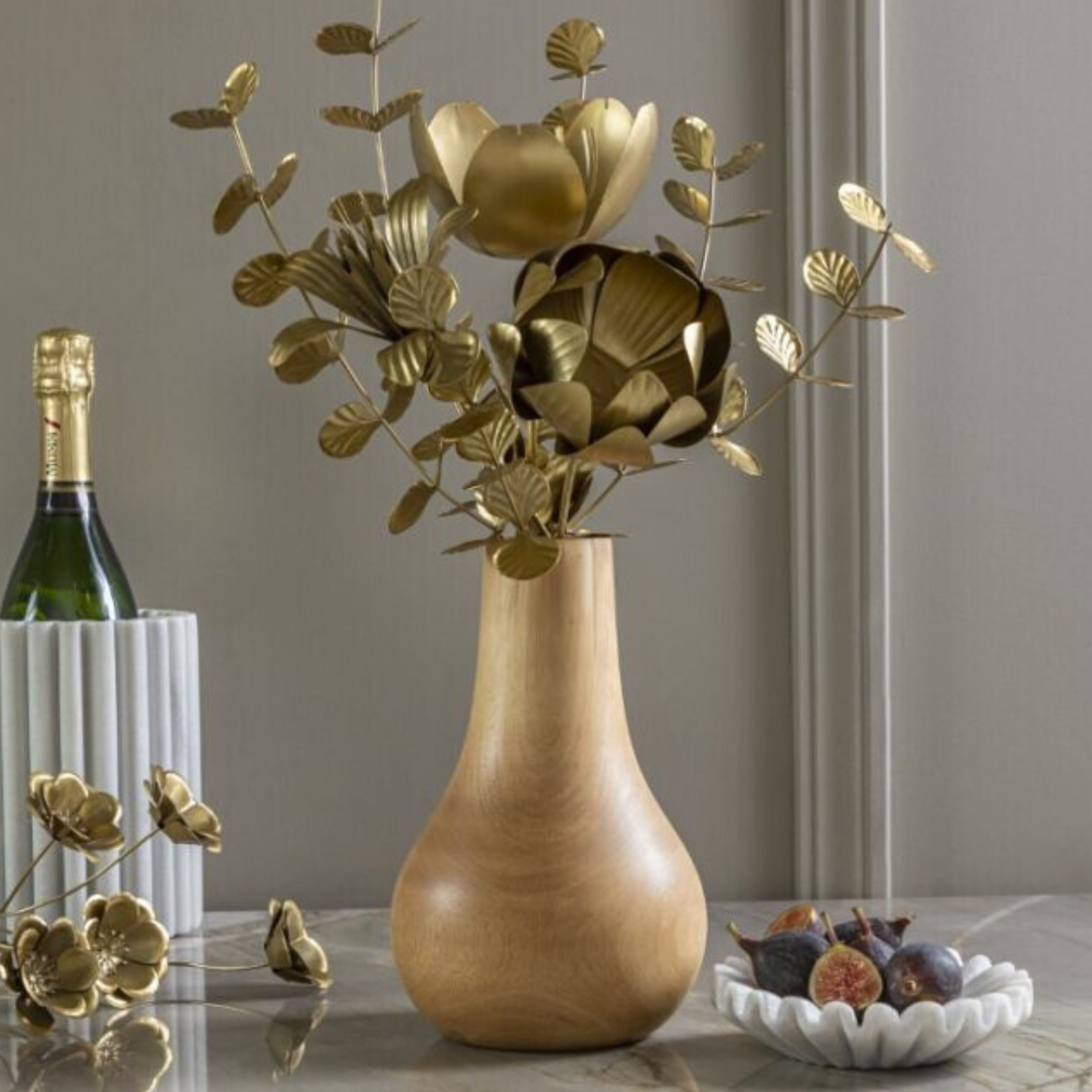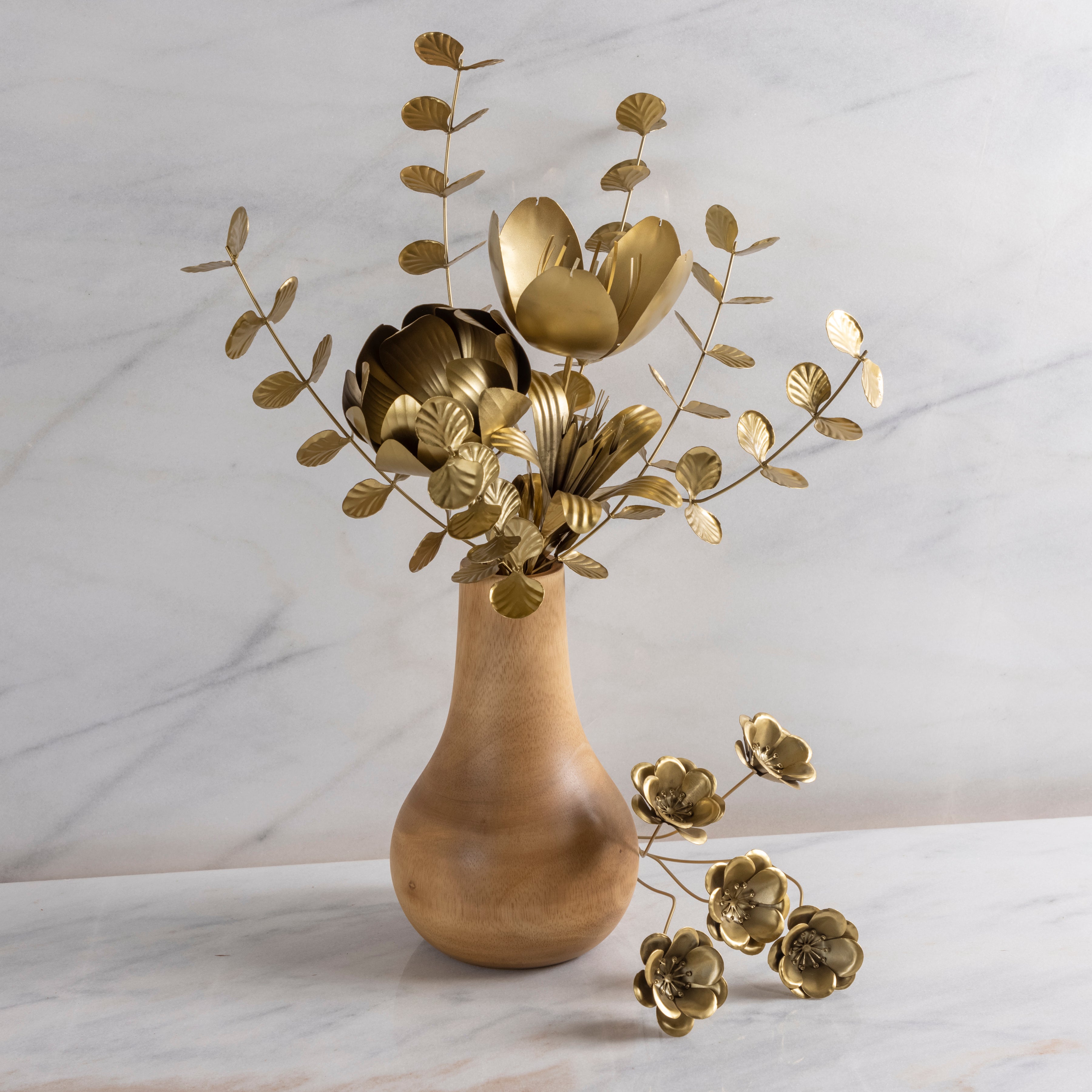 Transform your space into a luxurious haven with our Botanical Stem in Eucalyptus. Featuring delicate gold floral details and a matte gold finish on iron, this exquisite piece adds a touch of elegance to any setting. Pair it with our mango wood vases for a sophisticated and eye-catching display.